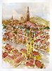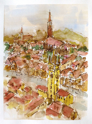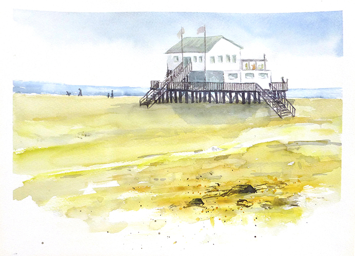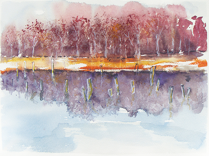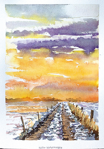 Vor 5 Jahren habe ich das Aquarell für mich entdeckt. Das Wechselspiel zwischen Zufall und Handwerk ist die große Herausforderung. Es geht um die Freude, das Entstehen eines Bildes zu planen und den Wiederstreit zwischen Wollen und Gelingen zu steuern. Hier liegt für mich die Faszination der Wasserfarben: Es ist das freie Spiel zwischen dem Zufall, was die Farben und das Wasser auf dem Papier anstellen und wie ich diese Reize für ein von mir gewünschtes Resultat nutzen kann. Es sind die Transparenz, die Leuchtkraft der Farben und die vielfältigen Möglichkeiten Pinsel, Schwämme und Federn als Werkzeuge für die Bildgestaltung einzusetzen.