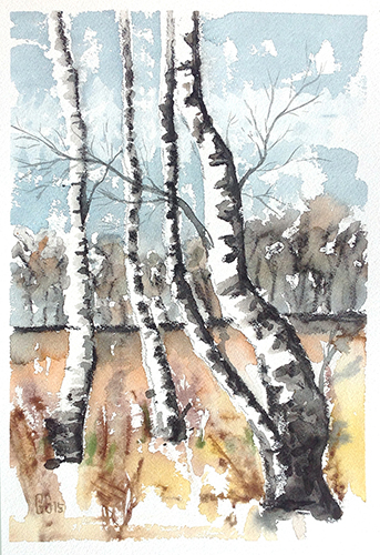 Meine Motive finde ich in der Natur, wo ich in Skizzenbüchern Eindrücke und Ideen festhalte um sie später im Atelier als Anregungen zu nutzen. Auch unterschiedlichste Bildvorlagen, die mich in irgendeiner Form ansprechen, werden verwendet, um sie nach eigenen Vorstellungen in einem Aquarell auszudrücken.